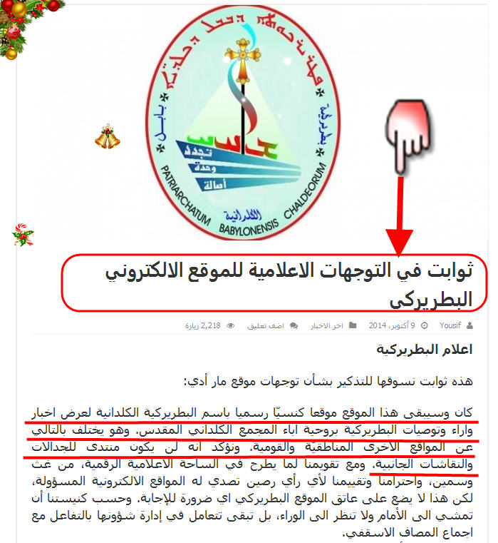 هذا الاعلام الكاذب يقول بان الموقع البطركي