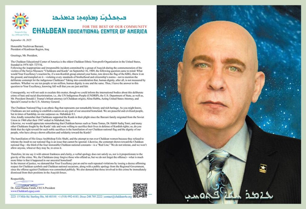 رسالة المركز الثقافي الكلداني الأمريكي (المفتوحة) إلى سيادة رئيس إقليم كوردستان العراق الموقر نيجرفان بارزاني