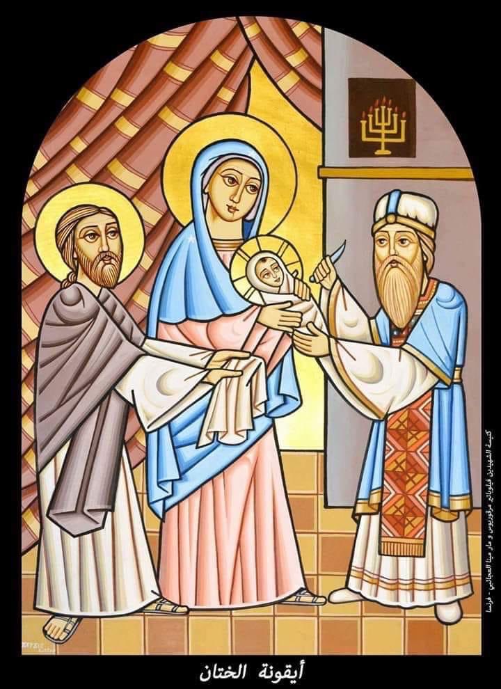 ومن بعده الرب يسوع المسيح يُختن في اليوم الثامن لمولده ايضاً (لوقا 2/ 21).