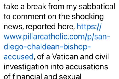Cardinal Sako confirms considering transfer of bishop but denies canvassing support The Pillar Feb 23, 2026 A Chaldean Catholic bishop under investigation for embezzlement urged Catholics Sunday to “defend my integrity and transparency,” as he...